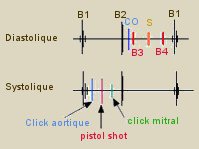 Les bruits systoliques : click d’éjection, pistol shot, click mitral.