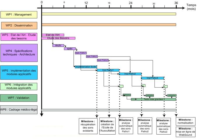 pérennité des développements. 3.3.2. Diagramme de Pert3.4. Plan de travail, jalons et livrablesParmi les pathologies étudiées, on peut citer la mucoviscidose, la bronchiolite, les pathologies cardiovasculaires, les BPCO, … Les livrables du projet sont les suivants: