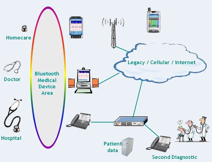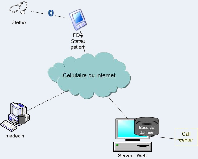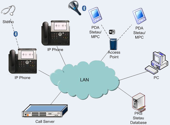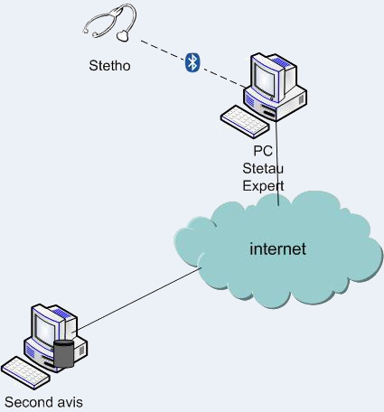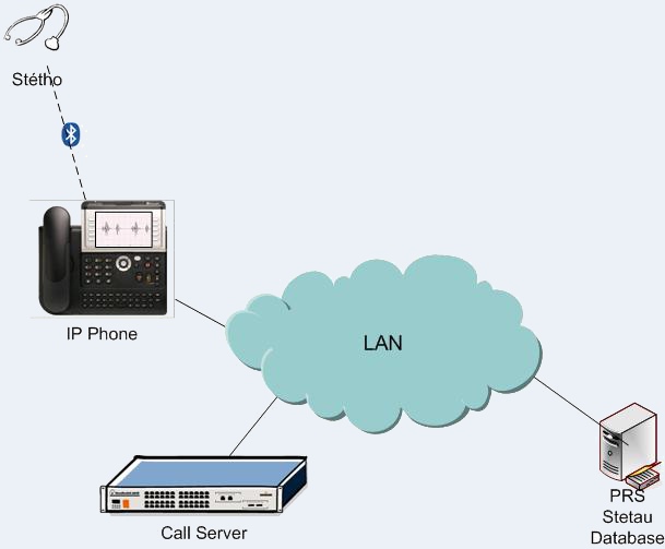 Le stéthoscope communique via une liaison Bluetooth avec un poste IP Bluetooth.