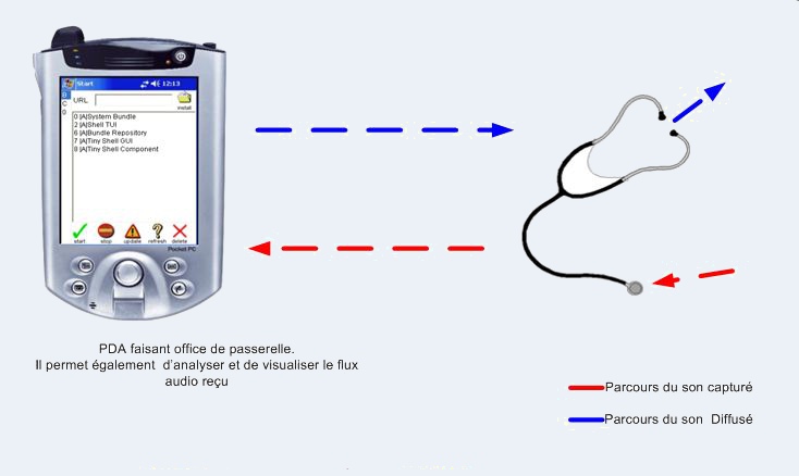 avec un equipement pôrtable, de type PDA, via une liaison Bluetooth. Les sons