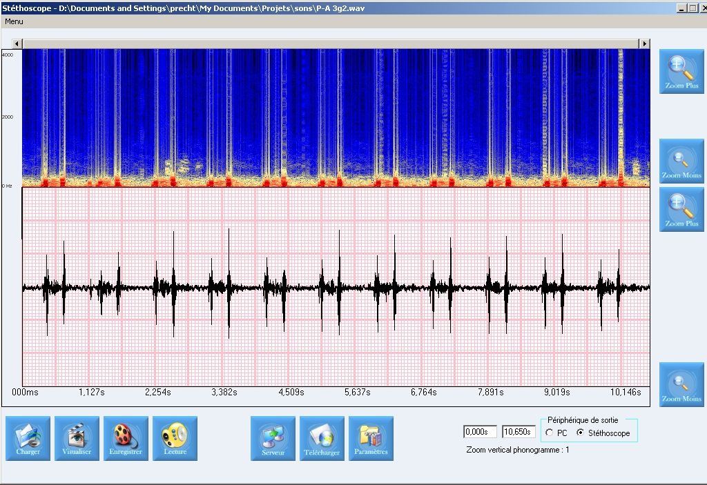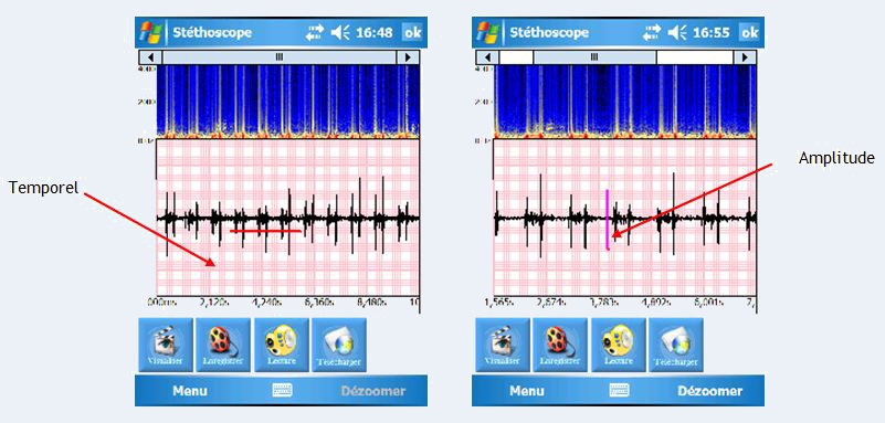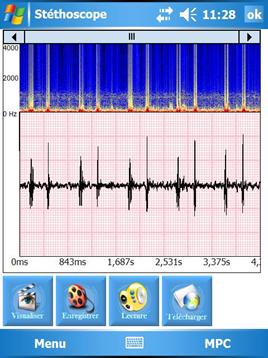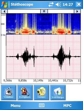visualisation du son auscultatoire sur l’écran et restitution audio.