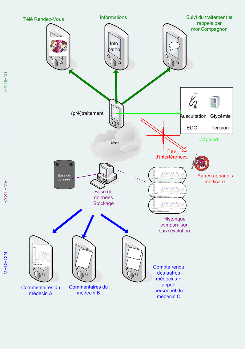 fil. Dans une deuxième phase, des périphériques de mesure ECG, glycémie, oxymétrie, tension,
