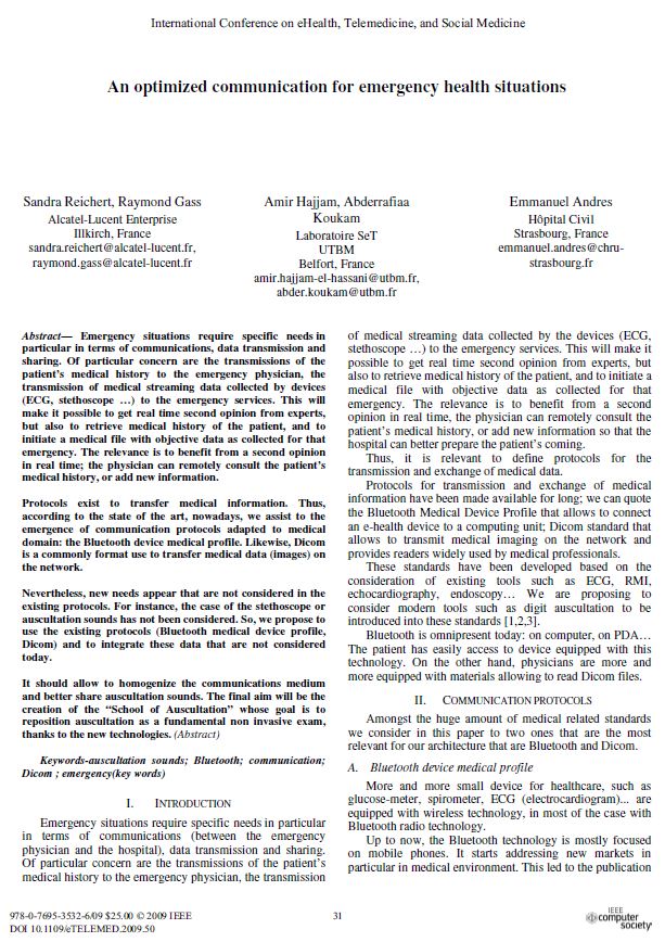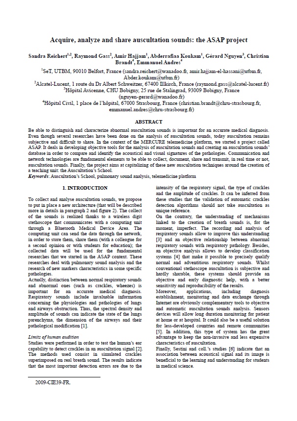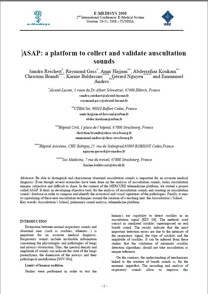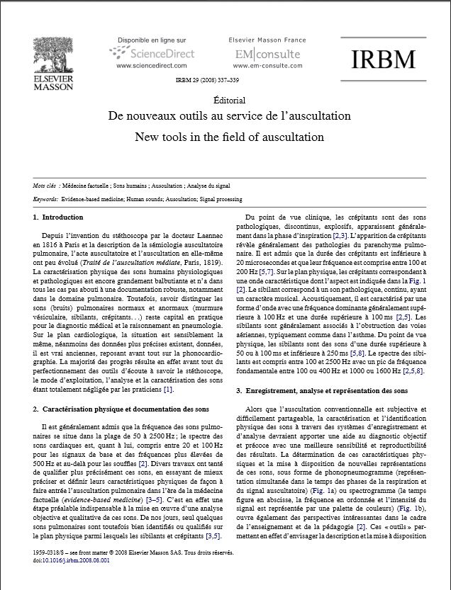 Introduction Quelques articles publiés à partir de 2007, et qui introduisent nos travaux sur le stéthoscope électronique |
