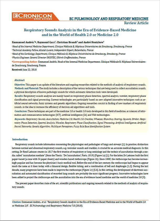 ![]() Emmanuel Andrès, MD PhD, Head of Internal Medicine Department, Raymond Gass, Technical Academy Fellow, Alcatel-Lucent, Independent Expert, Bolsenheim, France Christian Brandt, Head of the Cardiology Department, Clinique Médicale B, Hôpitaux Universitaires de Strasbourg, Strasbourg, France and Andre Hentzler, Physics Engineer, General Director INCOTEC, Illkirch Graffenstaden, France Corresponding Author: Emmanuel Andrès, Head of the Internal Medicine |