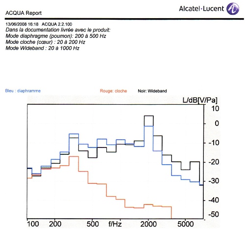 Les tests ont été effectués jusqu'à 120 dB SPL (dB acoustiques). Le stéthscope était équipé des oreillets que l'on voit sur la photo