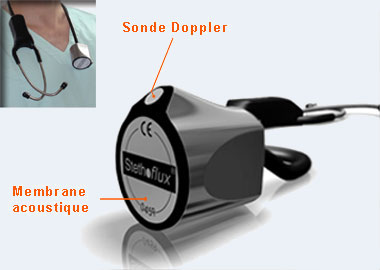 Stethoflux est un produit couplant stéthoscope acoustique, et doppler intégré à émission
